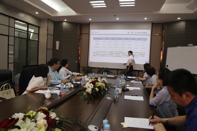 (协会会长曹滨顺正在向考察团介绍公司经营情况)