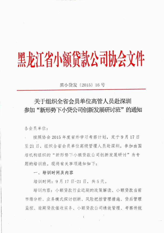 省小贷协会大庆代表处 2015年第二期业务培训活动圆满结束