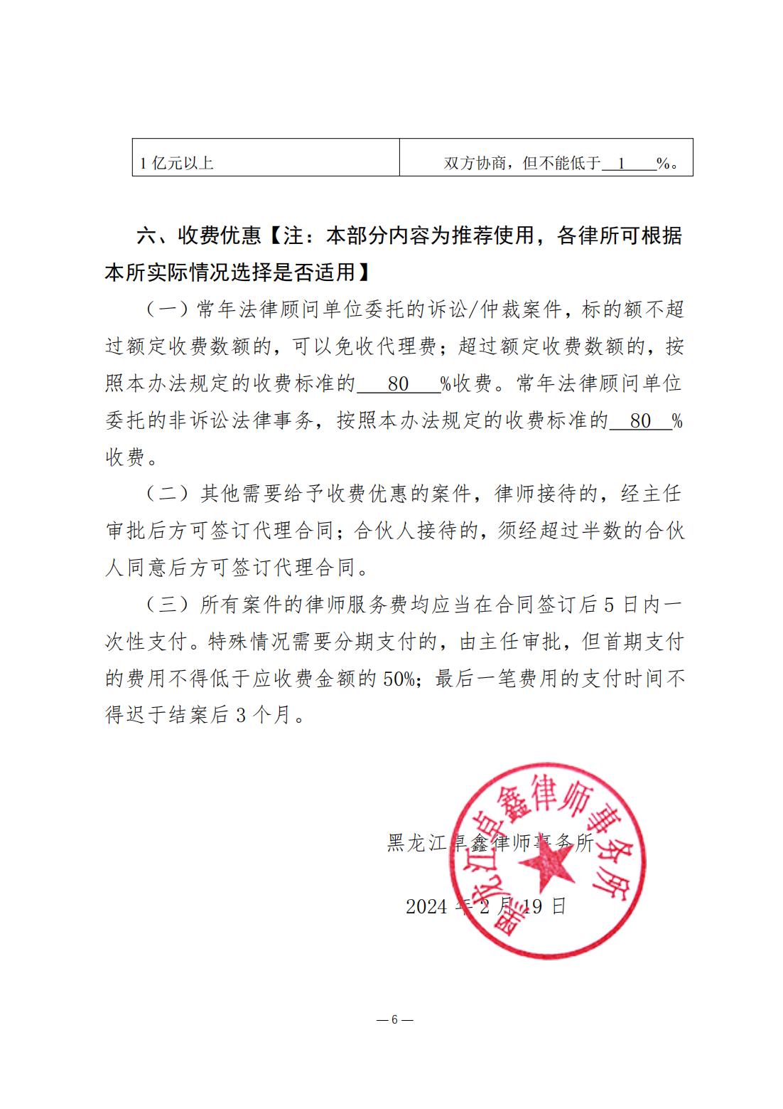针对本所会员客户,将按照本所经公示的《黑龙江卓鑫律师事务所收费标准》的 50% 收取服务费用。该优惠政策覆盖多项基础法律服务(特殊复杂案件需结合实际情况另行协商),既能切实降低会员客户的法律成本,也能让会员在享受专业法律服务时获得更高性价比,充分体现本所对长期合作客户的回馈与支持。