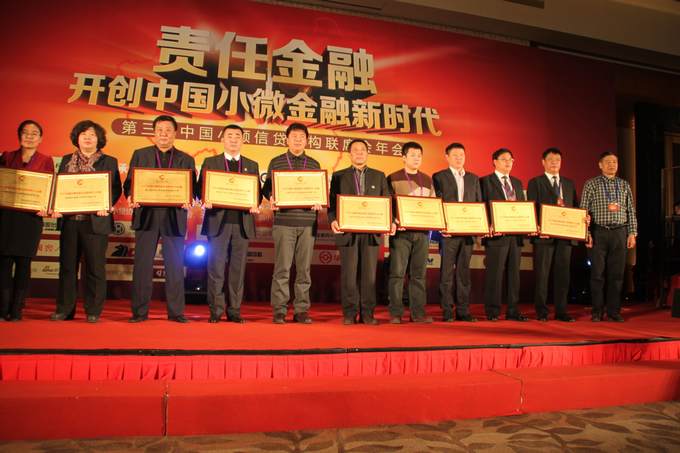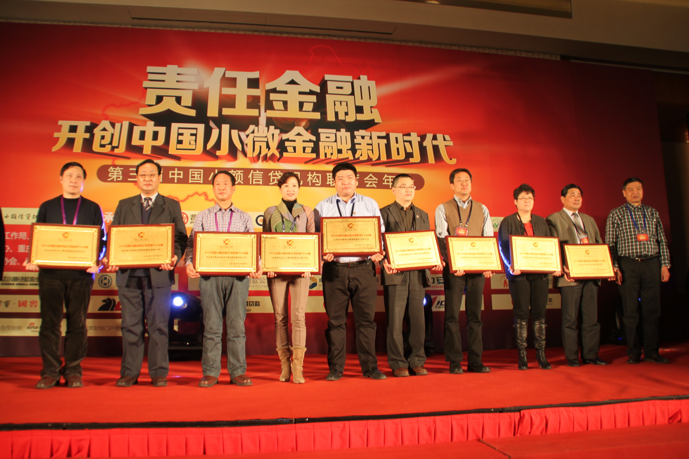 2013年1月8日,由中国小额信贷机构联席会主办的第三届中国小额信贷机构联席会年会在北京金融街威斯汀酒店隆重召开。本次年会以"责任金融、开创中国小微金融时代"为主题,中国人民银行、银监会、财政部、各省(直辖市、自治区)金融办、中小企业局、小额贷款协会、世界银行等国际机构、各有关商业银行、优秀小额贷款公司以及小微行业内有关专家学者等逾600为业界人士齐聚一堂,共同见证小微金融行业的盛会。"2012中国小额贷款公司竞争力100强"、"2012中国小微金融年度人物"、"2012中国小微金融最具发展潜力奖"、"2012中国小微金融最佳创新贡献奖"、"2012中国小微金融最佳行业服务奖"、"2012中国小微金融最佳社会责任奖"、"2012中国小微金融最佳产品设计奖"等奖项悉数颁发,引起广泛关注。今年的百强及单项奖共有28个省市自治区的5306家小额信贷机构参与角逐,竞争非常激烈。此次我省共获得全部七项大奖中的14个奖项,占全部奖项数量的7%,获奖数量位居全国前列。