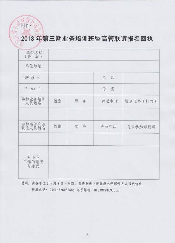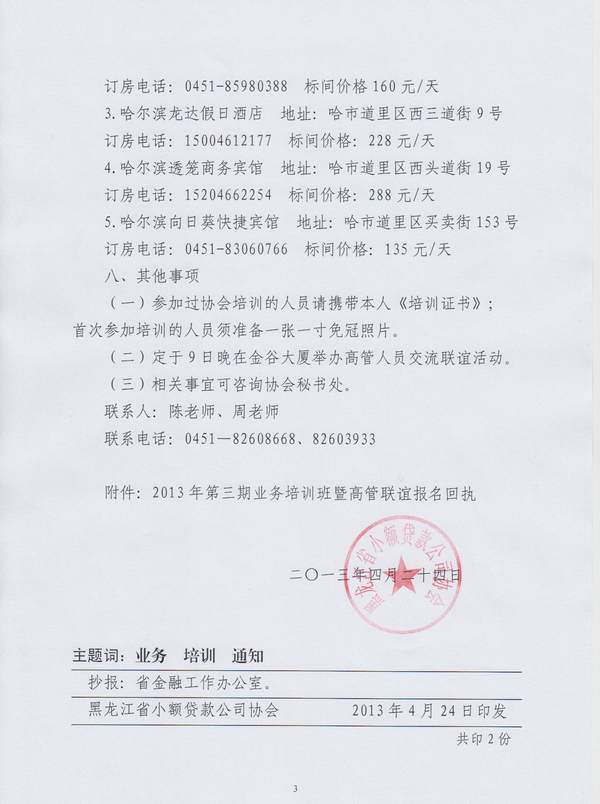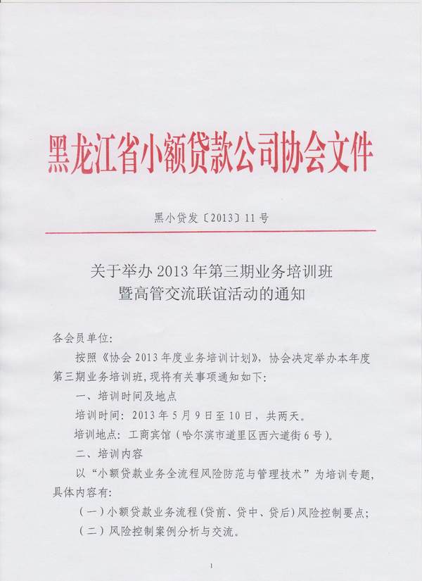 关于举办2013年第三期业务培训班暨高管交流联谊活动的通知(黑小贷发[2013]11号)