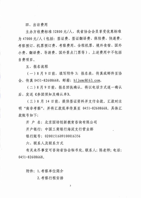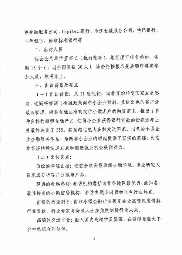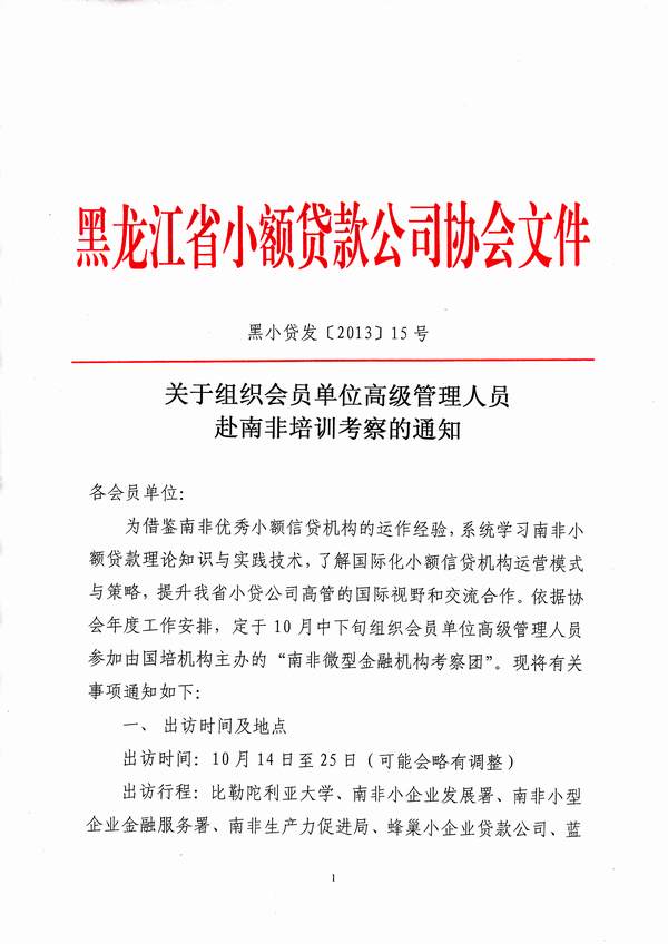 关于组织会员单位高级管理人员赴南非培训考察的通知