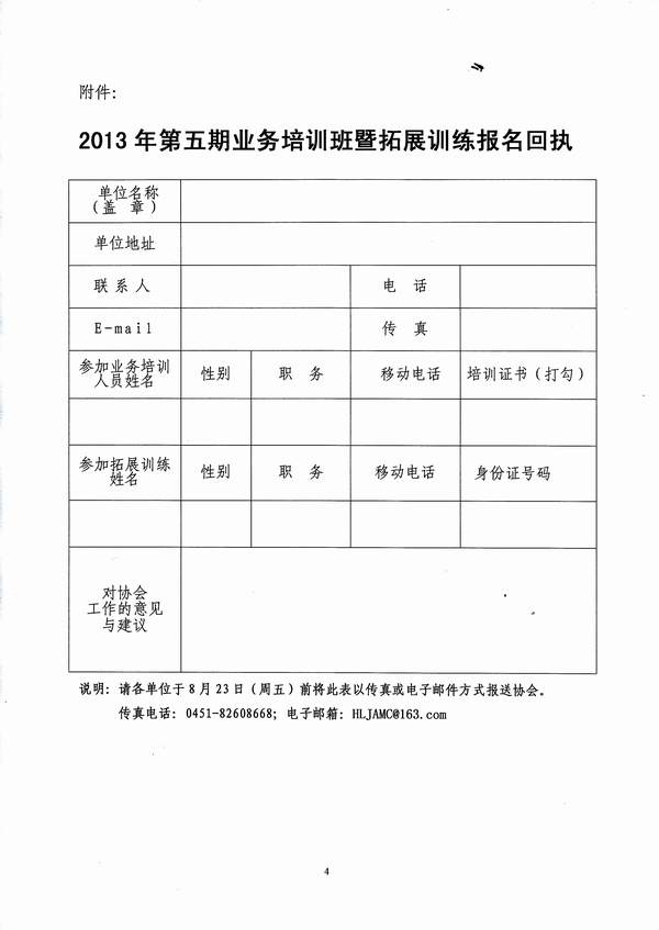 附件:2013年第五期业务培训班暨拓展训练活动报名回执.doc