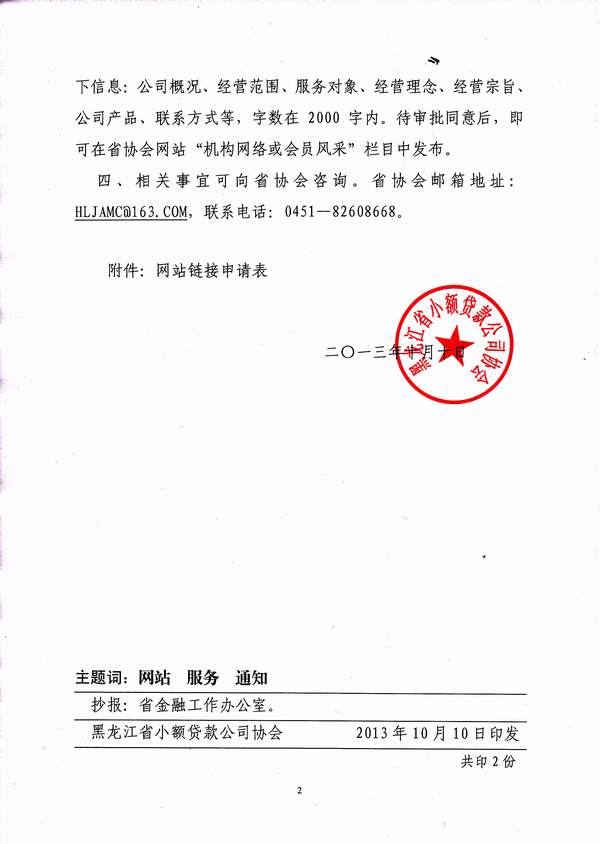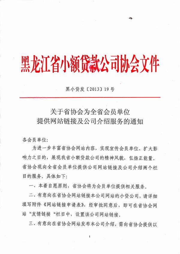 关于为全省会员单位提供网站链接及公司介绍服务的通知(黑小贷发[2013]19号)