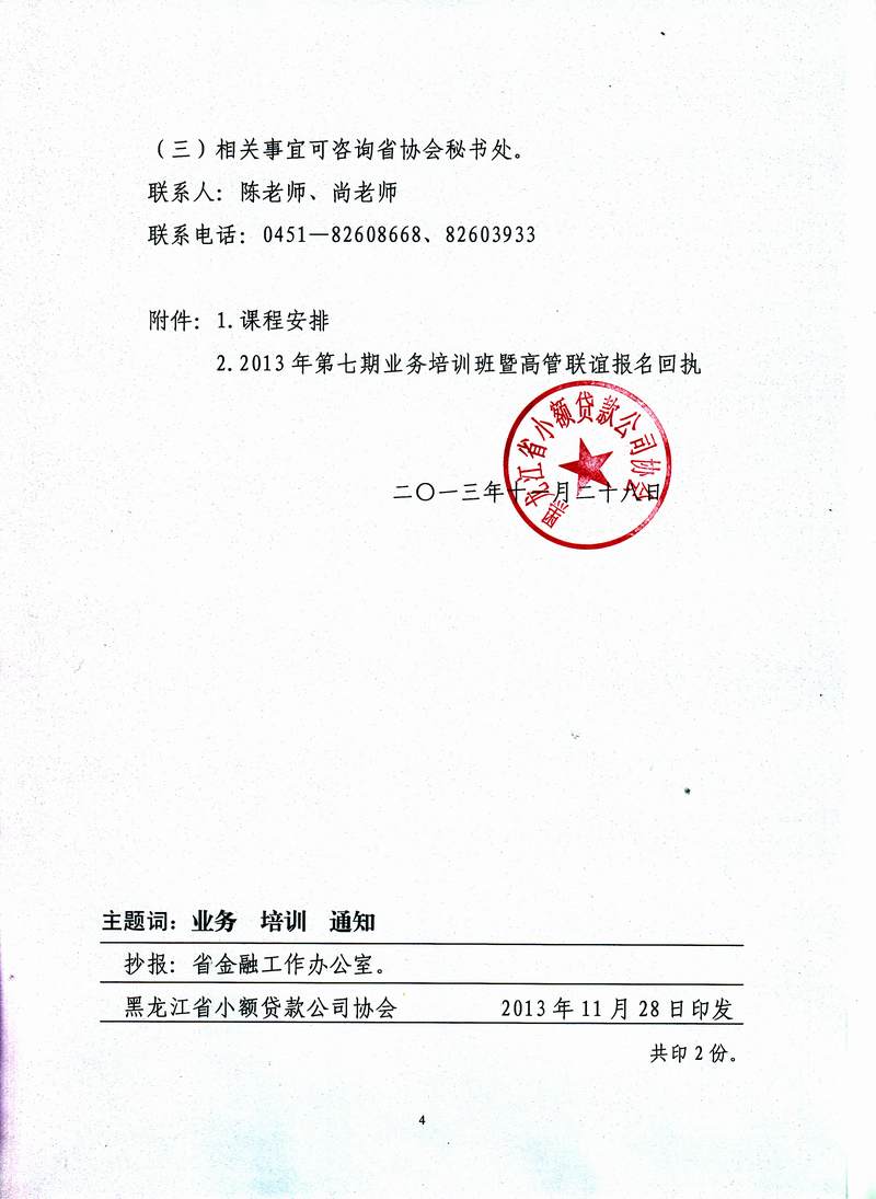 关于举办2013年第七期业务培训班暨高管交流联谊活动的通知(黑小贷发[2013]25号)