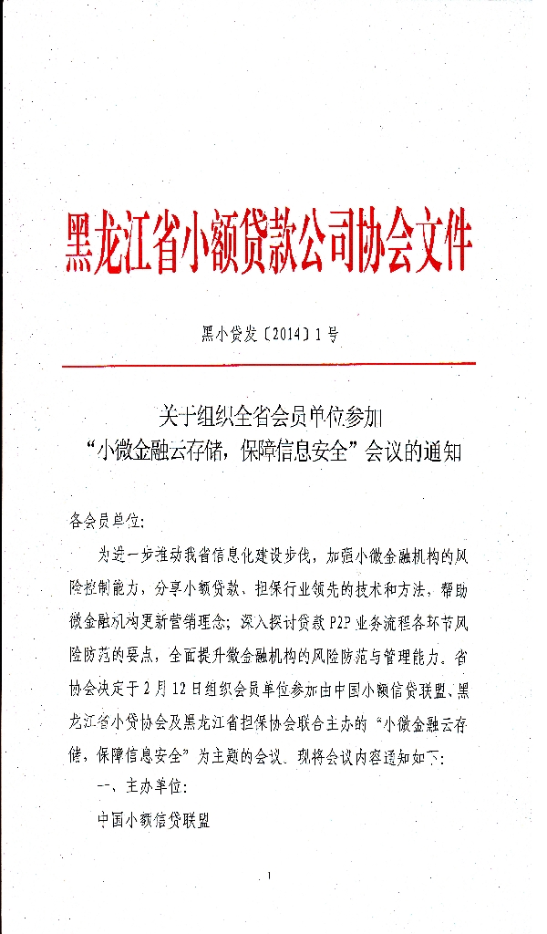 关于组织全省会员单位参加“小微金融云存储,保障信息安全”会议的通知