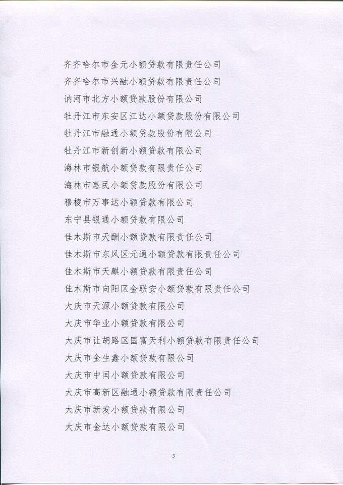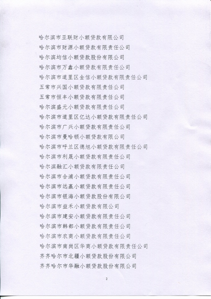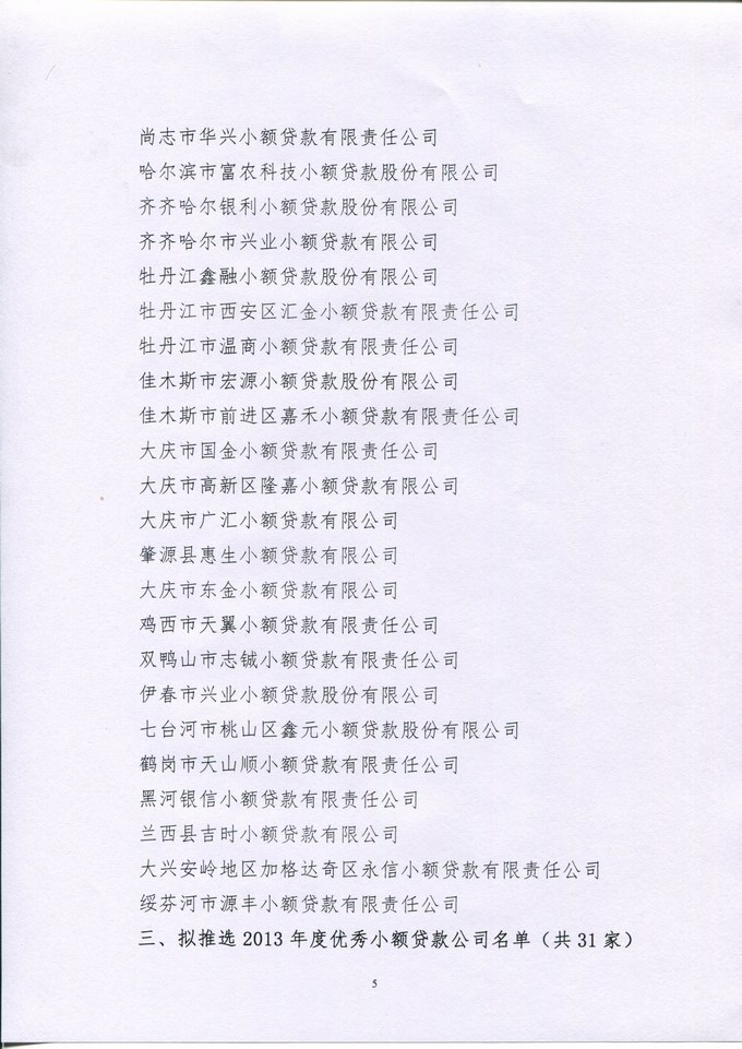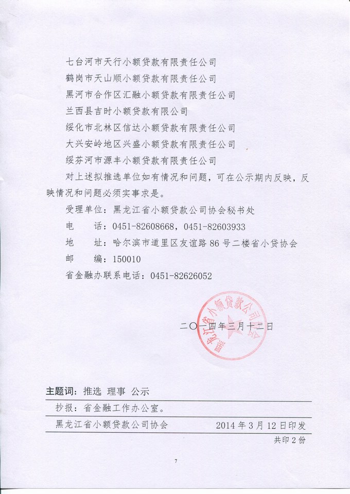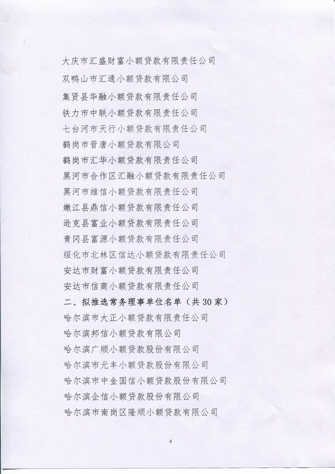关于拟推选黑龙江省小额贷款公司协会第二届理事会理事、常务理事单位及年度优秀小贷公司名单的公示