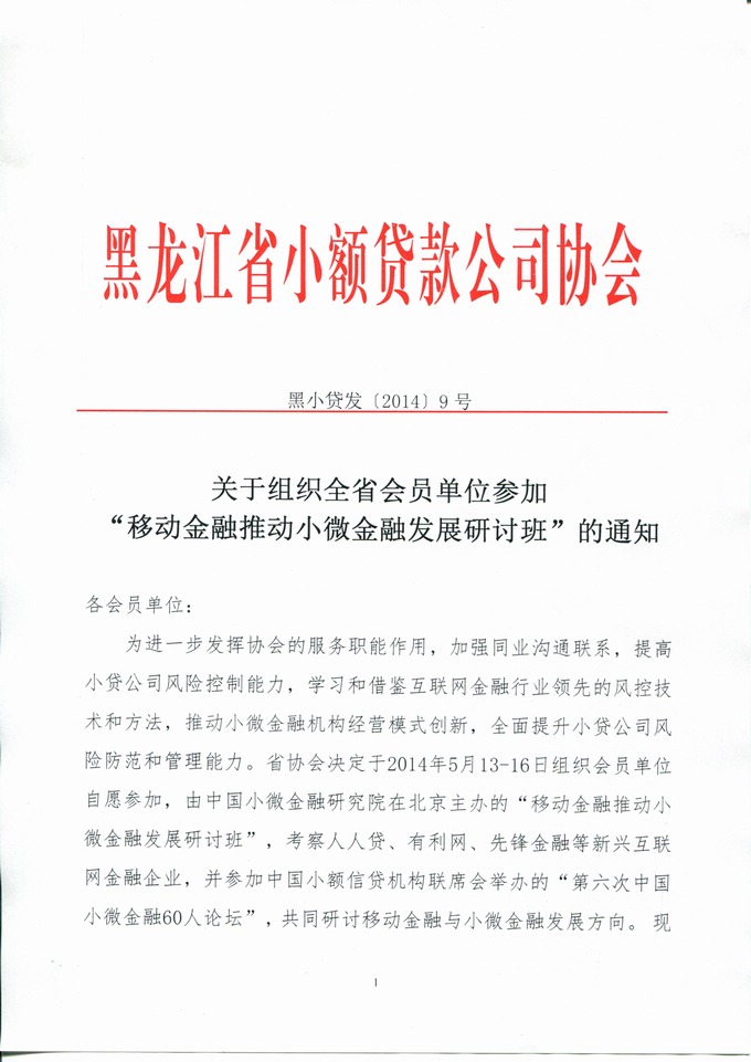 关于组织全省会员单位参加“移动金融推动小微金融发展研讨班”的通知