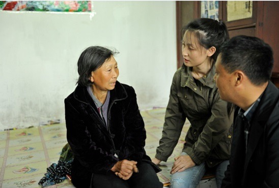 (图为小贷公司负责人与被救助农户交谈)