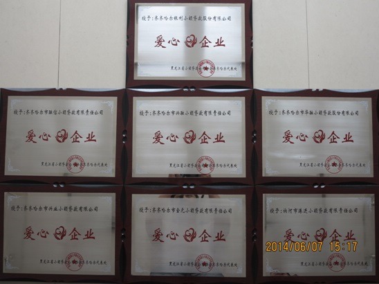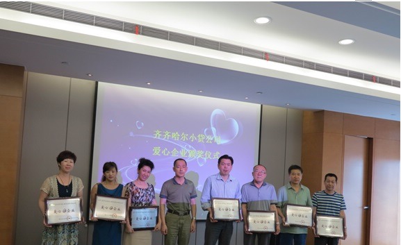 齐齐哈尔代表处团队的凝聚力靠全市所有小贷公司的支持,您们的一份爱心,一份责任,为代表处的发展留下浓重的一笔。2014年6月11日上午,黑龙江省齐齐哈尔小贷公司赴浙江考查团在宁波市小贷协会会议室举办了爱心企业表彰会,并颁发"爱心企业"奖牌。