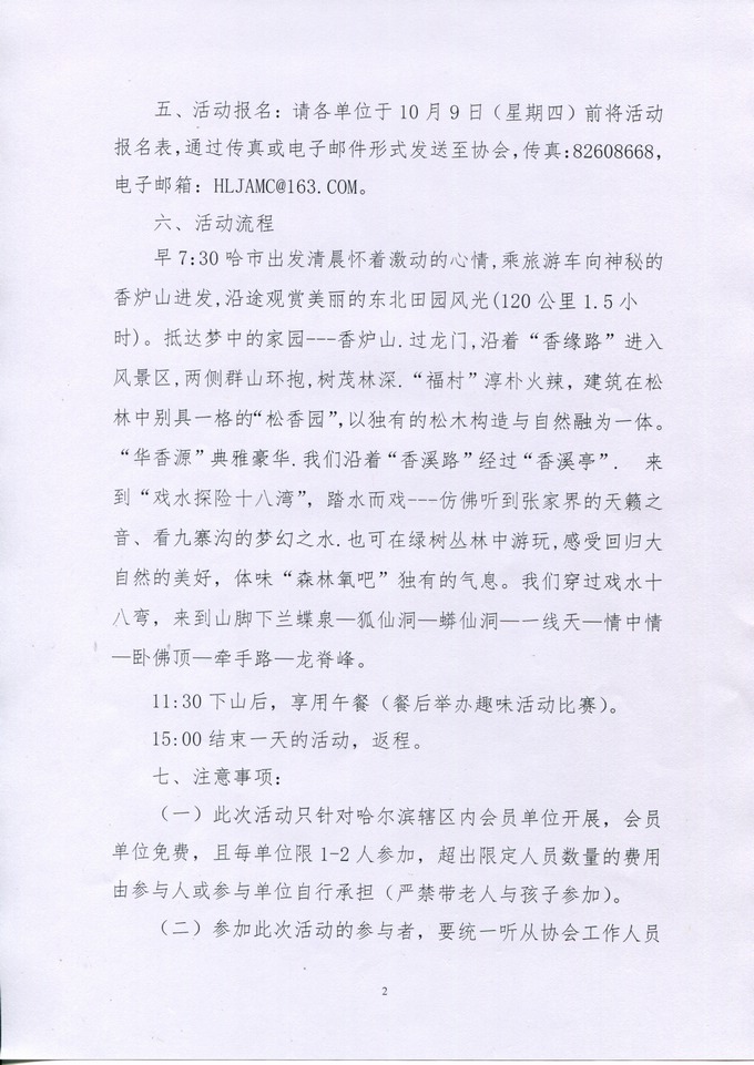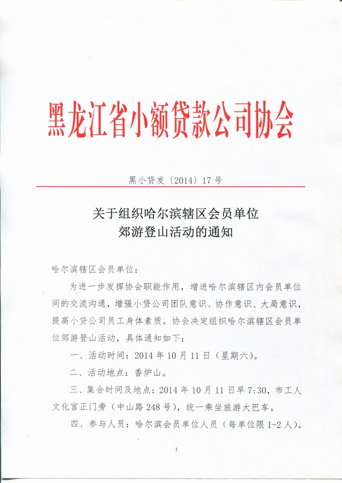 关于组织哈市会员单位郊游登山活动通知