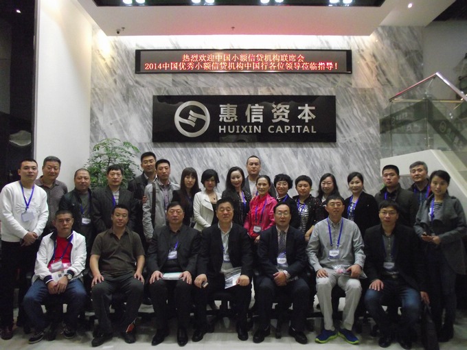 (图为考察人员在龙马兴达小贷公司门前合影留念)