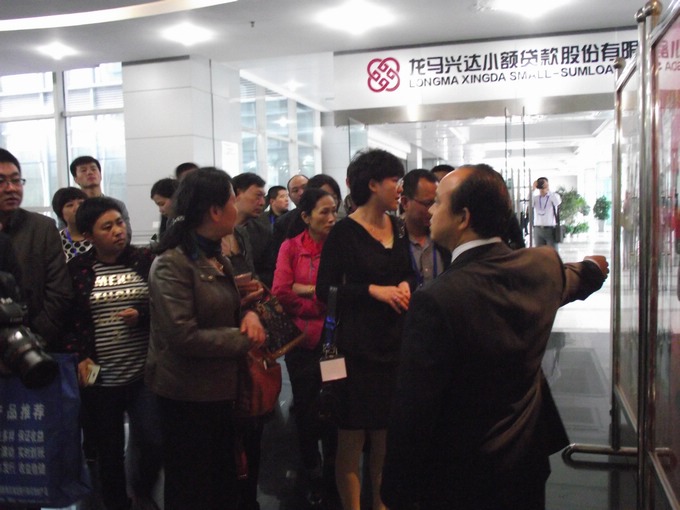 (图为考察团正在对龙马兴达小贷公司实地考察)