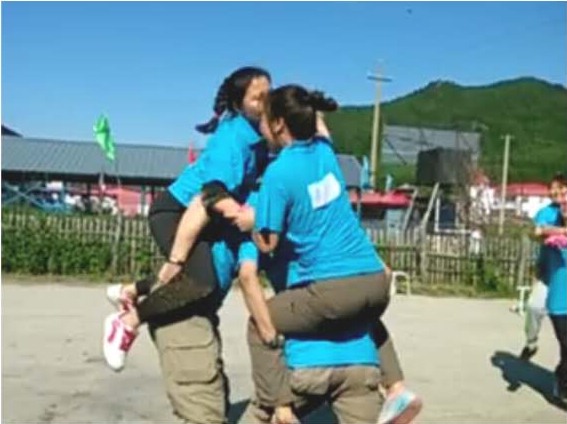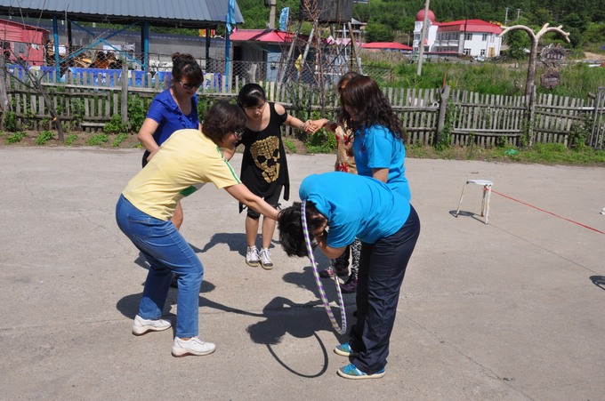 在午餐过后,全体人员在餐厅户外的空地上举行了趣味游戏比赛。主持人将所有人员分成了A和B两组,并进行了有竞技性和趣味性的10个游戏比赛项目的对抗。在欢快的音乐中,两队选手积极报名、踊跃参赛。特别是"猜成语"和"撕名牌"游戏,将活动推向了高潮,不时的传出掌声和欢呼声。在队员的们相互配合下,取得了最终胜利。分别获得了优胜奖和纪念奖。在下午四时,结束了全部比赛项目后,全体人员乘车返回了哈尔滨。在返程途中大家还不忘晒晒照片,回味着登山和趣味游戏带来的快乐。