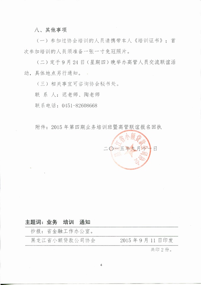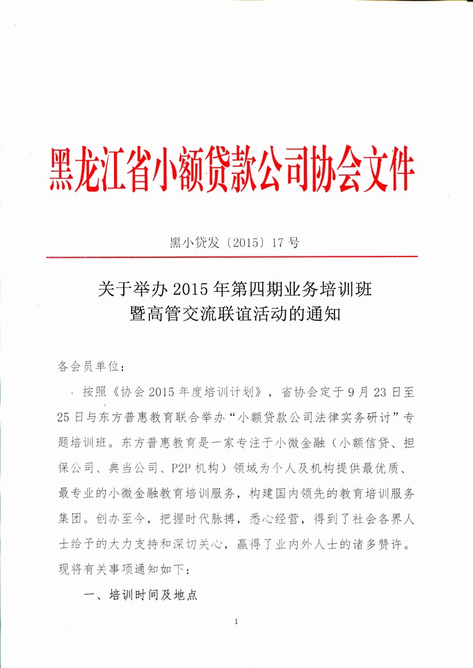关于举办2015年第四期培训班的通知