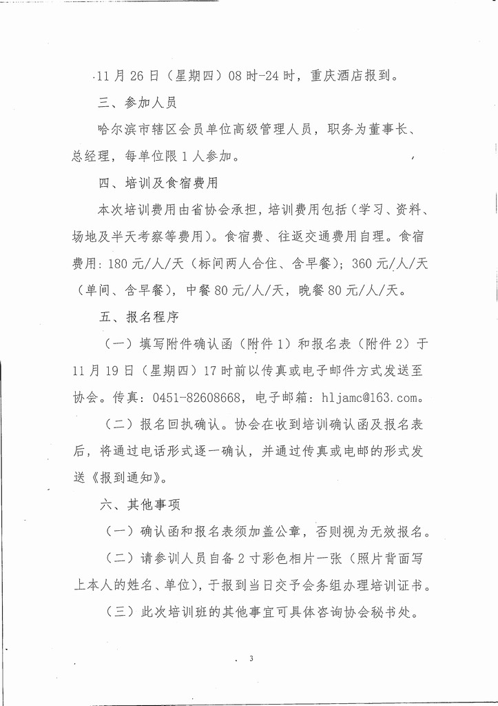 关于组织哈市会员单位高管赴重庆培训的通知