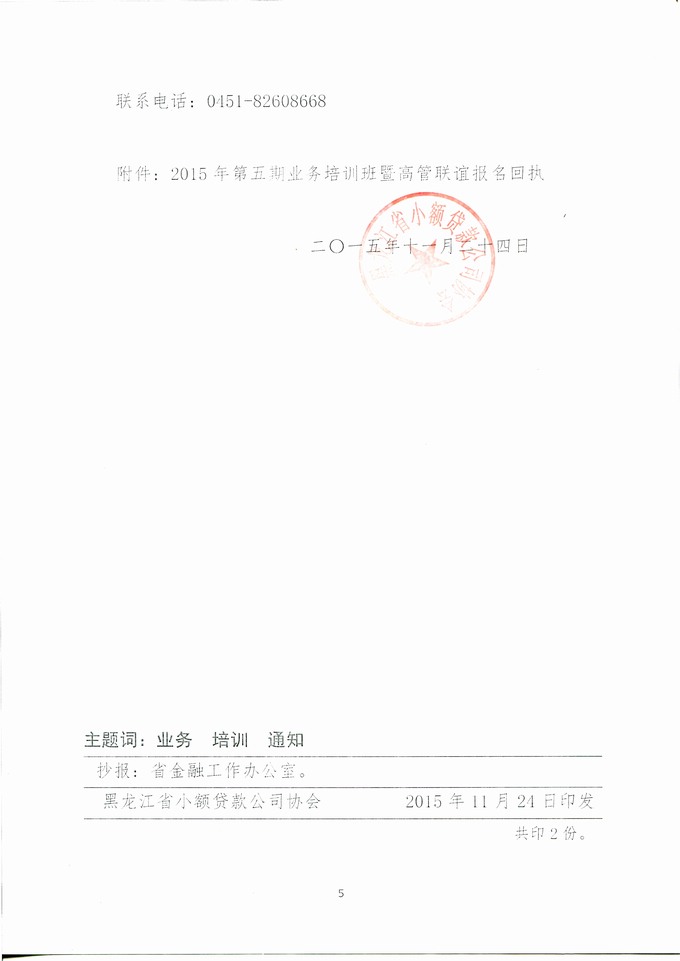 关于举办2015年第五期培训班的通知