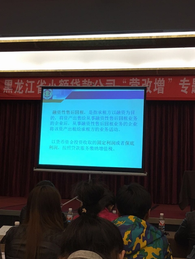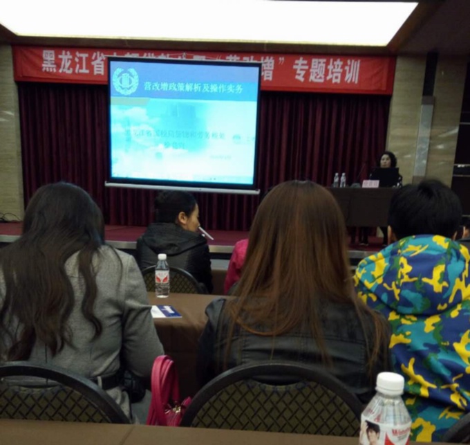为贯彻落实"营业税改征增值税"的相关税改精神,帮助我省小贷行业有效规避税务风险,协会于2016年4月29日上午,组织全省小额贷款公司高管、财务人员,在金谷大厦成功举办了"营业税改征增值税"专题培训班。本次培训得到了黑龙江省国家税务局的大力支持,特邀省国税局货物和劳务税处徐竞宣科长进行授课。会议由协会副会长徐晓杰主持,来自全省的小额贷款公司共计172人参加了培训。