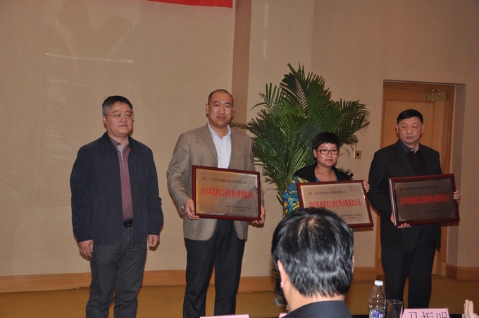 (省金融办郎国明主任颁发黑龙江瀚华小贷公司副会长单位铭牌)