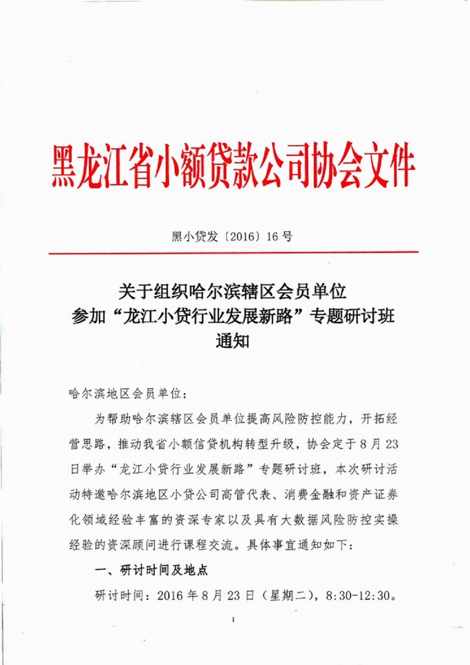 关于组织哈尔滨辖区会员单位参加专题研讨班的通知