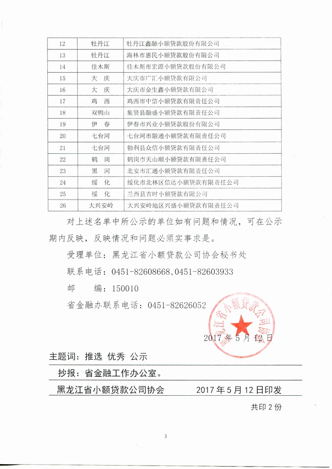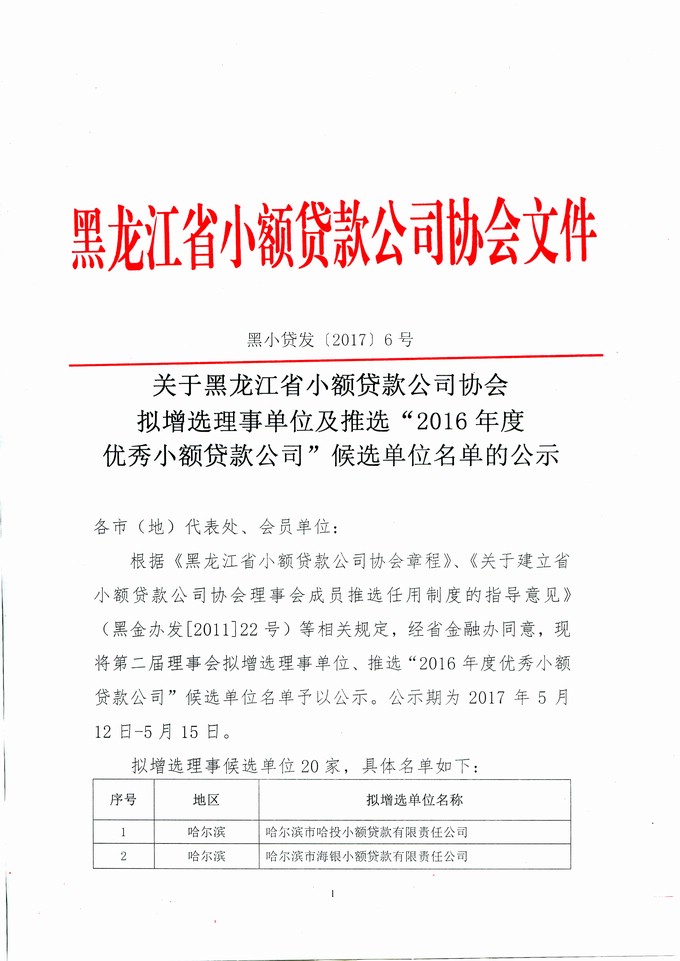 关于拟增选理事、推选16年度优秀小贷公司候选单位名单的公示