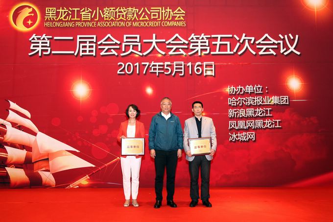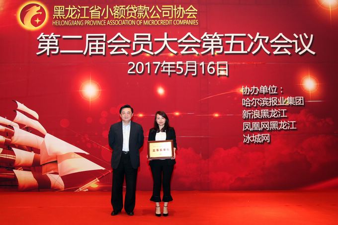 (哈尔滨市金融办魏继荣处长为优秀小贷公司颁奖)