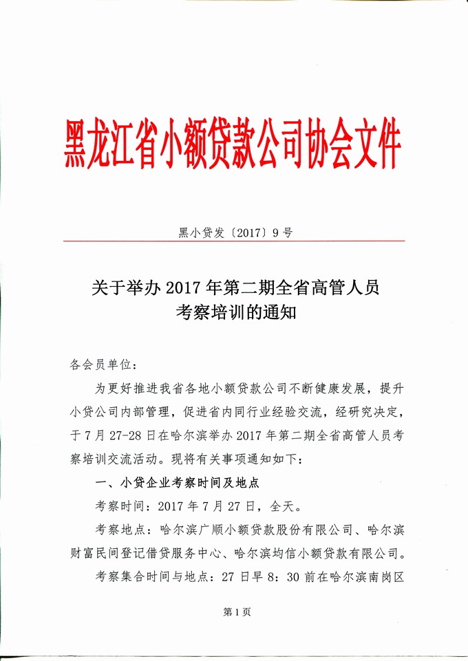 关于举办2017年第二期全省高管人员考察培训的通知