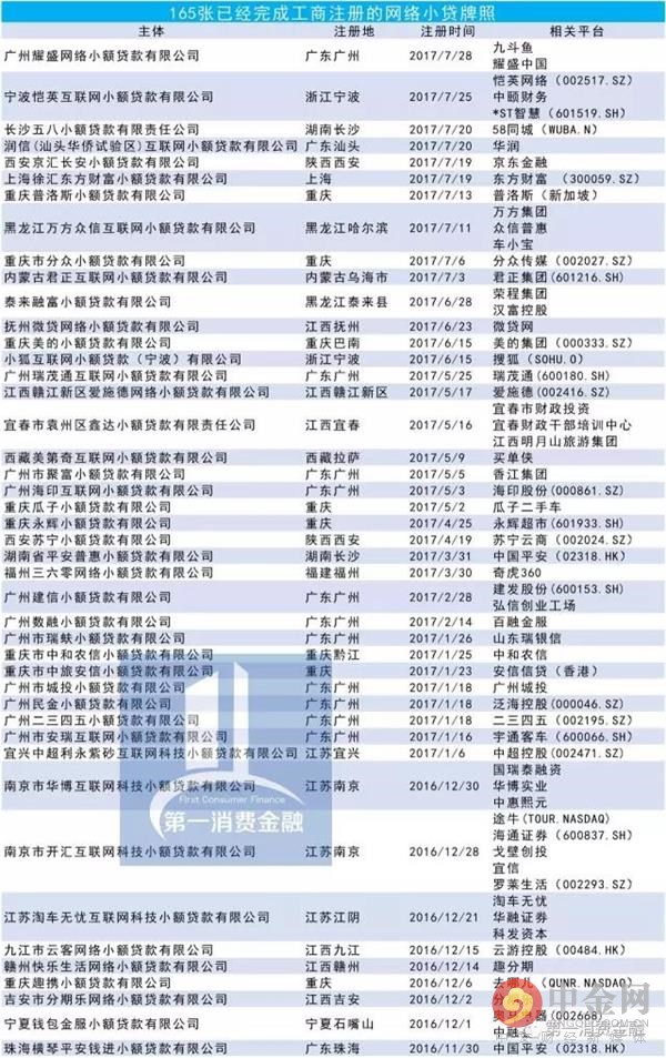 以下为165张已经完成工商注册的网络小贷牌照名单,欢迎补充(请点击图片查看清晰原图):