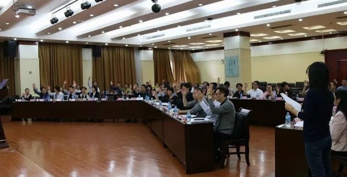 中贷协2017年"双推"评审会由副会长樊卫东主持。在"双推"评审会上,首先是各省、自治区、直辖市、计划单列市的小贷公司协会代表逐一汇报了本辖区组织开展"双推"工作的情况,对本辖区重点推荐人员进行简要介绍和展现,并由中贷协地方协会专门委员会委员对照介绍情况在评分表上现场打分。最后由参会人员对各省、自治区、直辖市、计划单列市小贷公司协会的推荐人选进行举手表决通过。整个审议过程全程录音摄像,彰显了公平、公正。