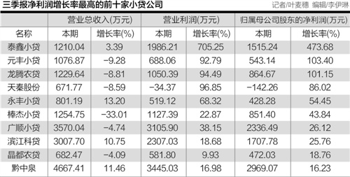 从净利润增速来看,泰鑫小贷拔得头筹。10月19日,其披露三季报,前三季度实现营收1210万元,较上年同期增长3%;净利润为1515万元,较上年同期增长473%。对于今年前9个月业绩大幅增长的原因,泰鑫小贷表示主要原因为本期收回了大量以前年度部分大额不良贷款,从而导致大额资产减值损失转回。同时,以前年度逾期贷款利息有部分收回,使本期营业收入小幅度增长。