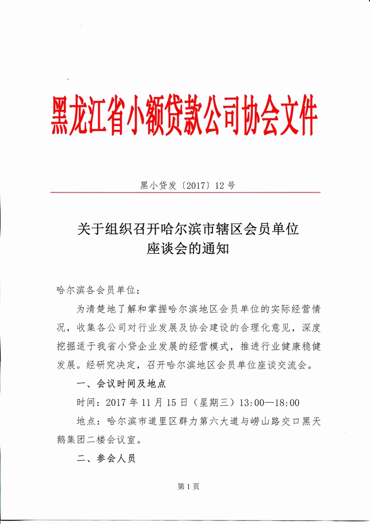 关于组织召开哈尔滨市辖区会员单位座谈会的通知
