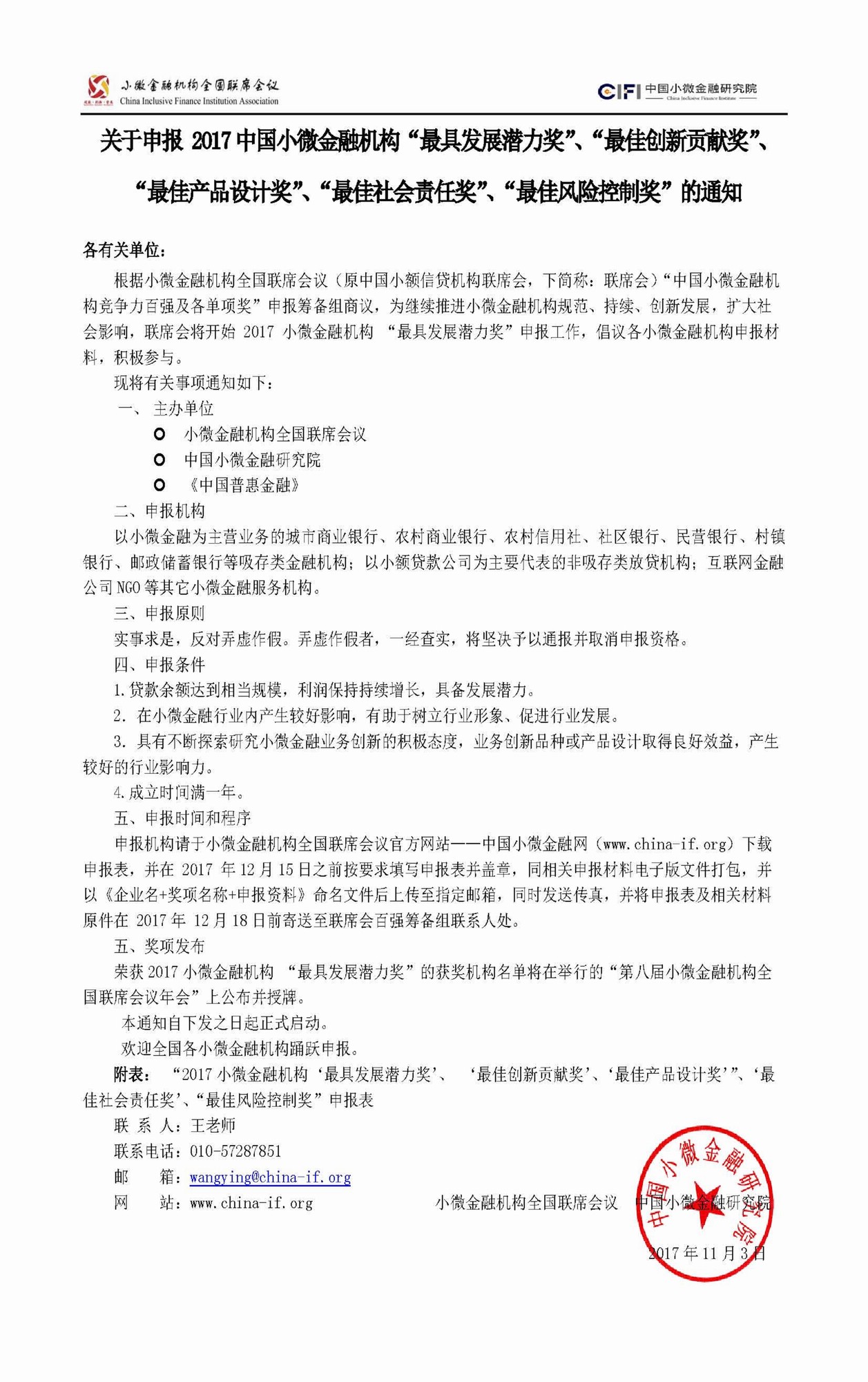 现转发小微金融机构全国联席会评选通知,请各单位根据自愿原则申报各奖项材料,协会不做统一组织。