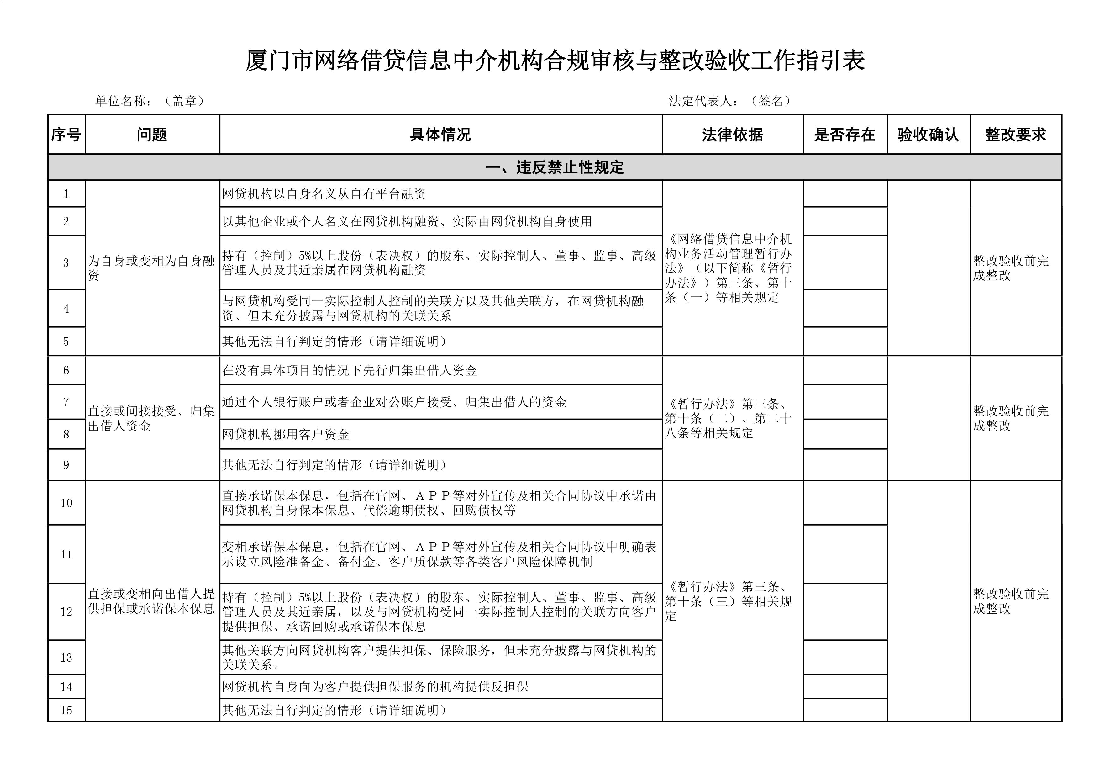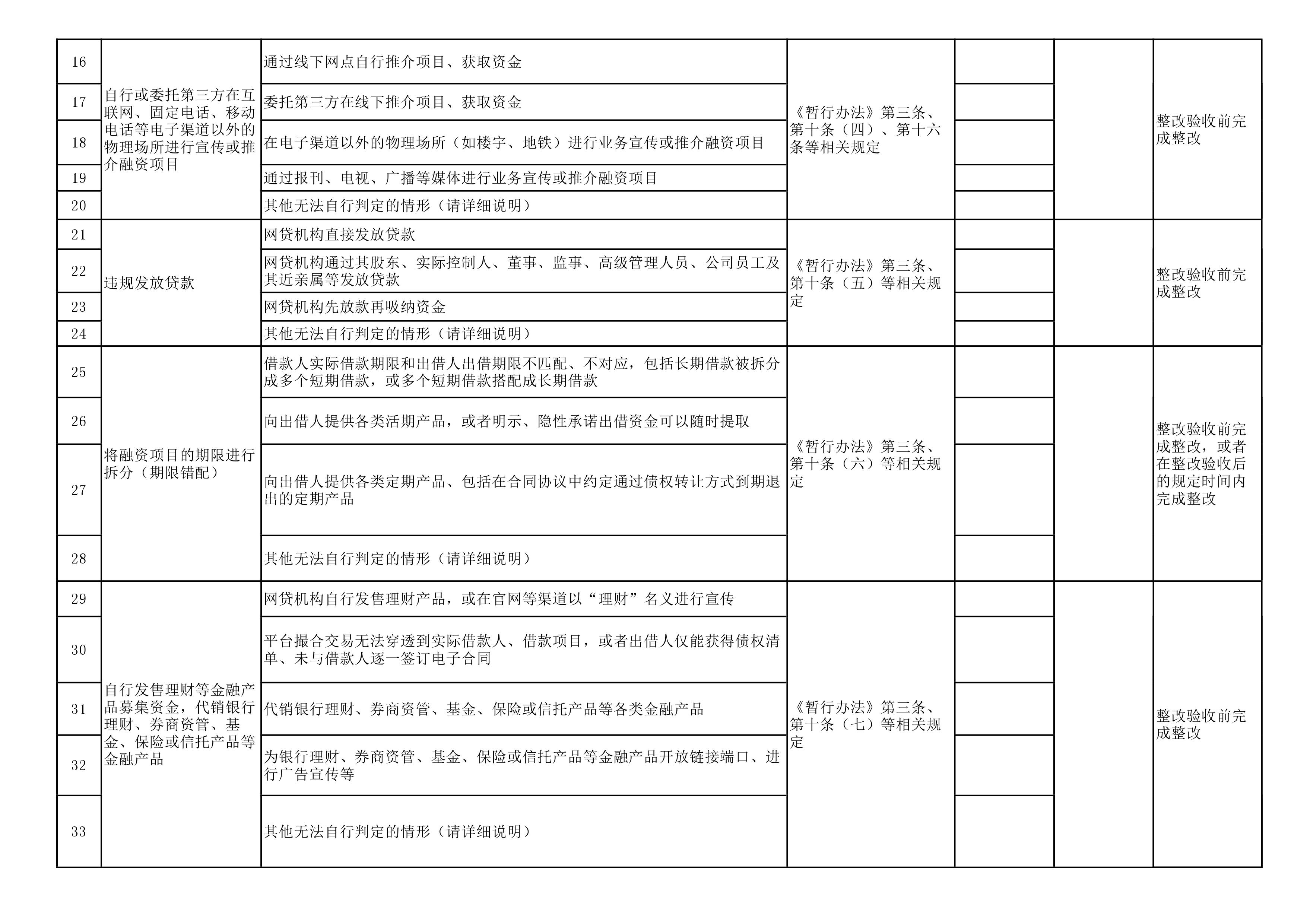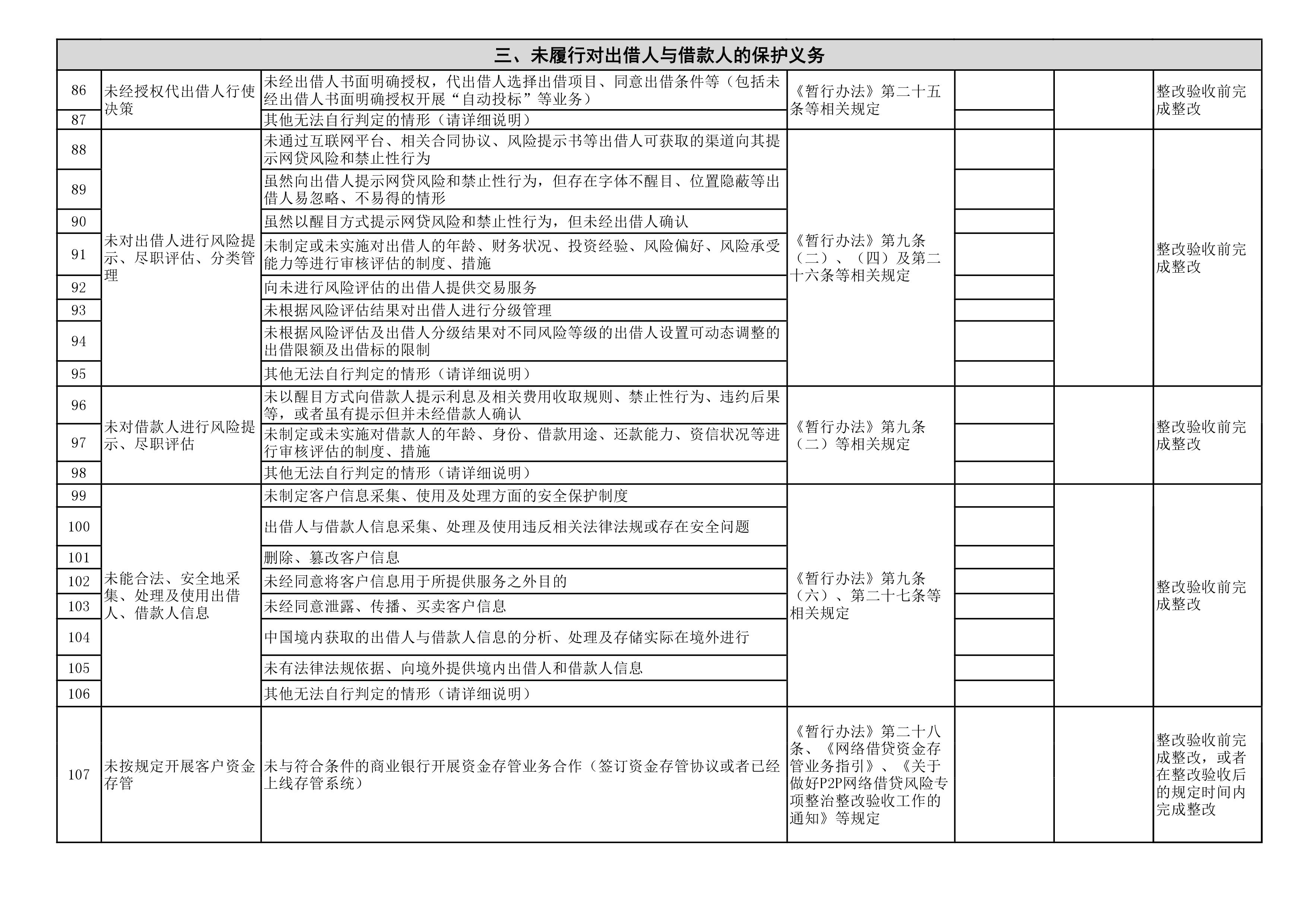 附《网络借贷信息中介机构合规审核与整改验收工作指引表》全文