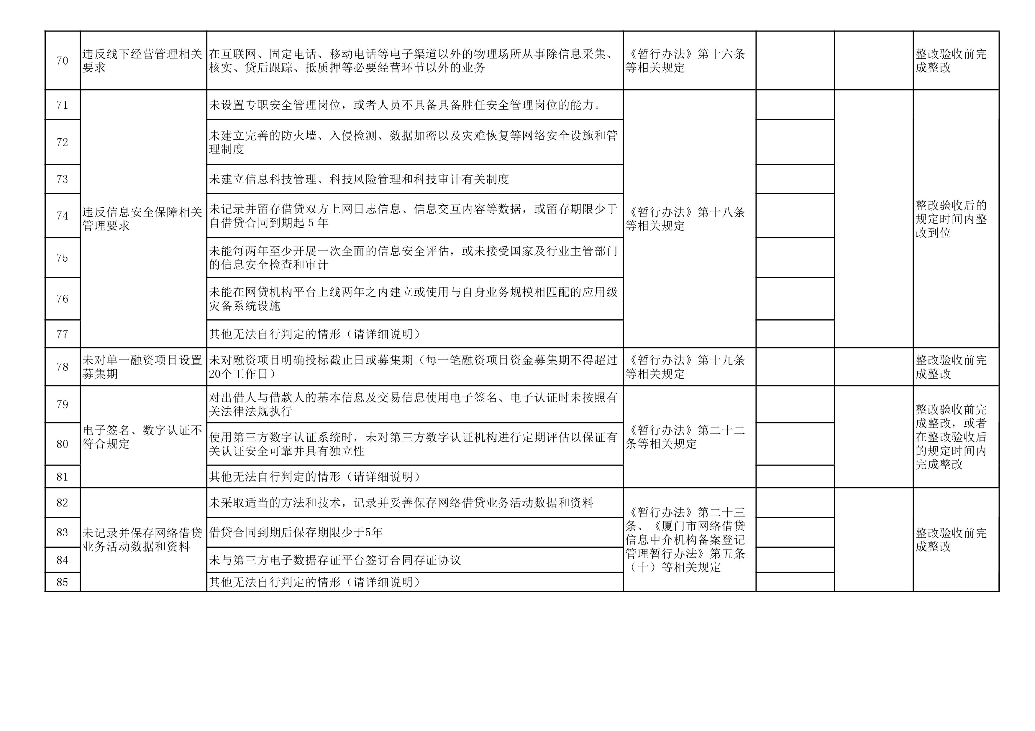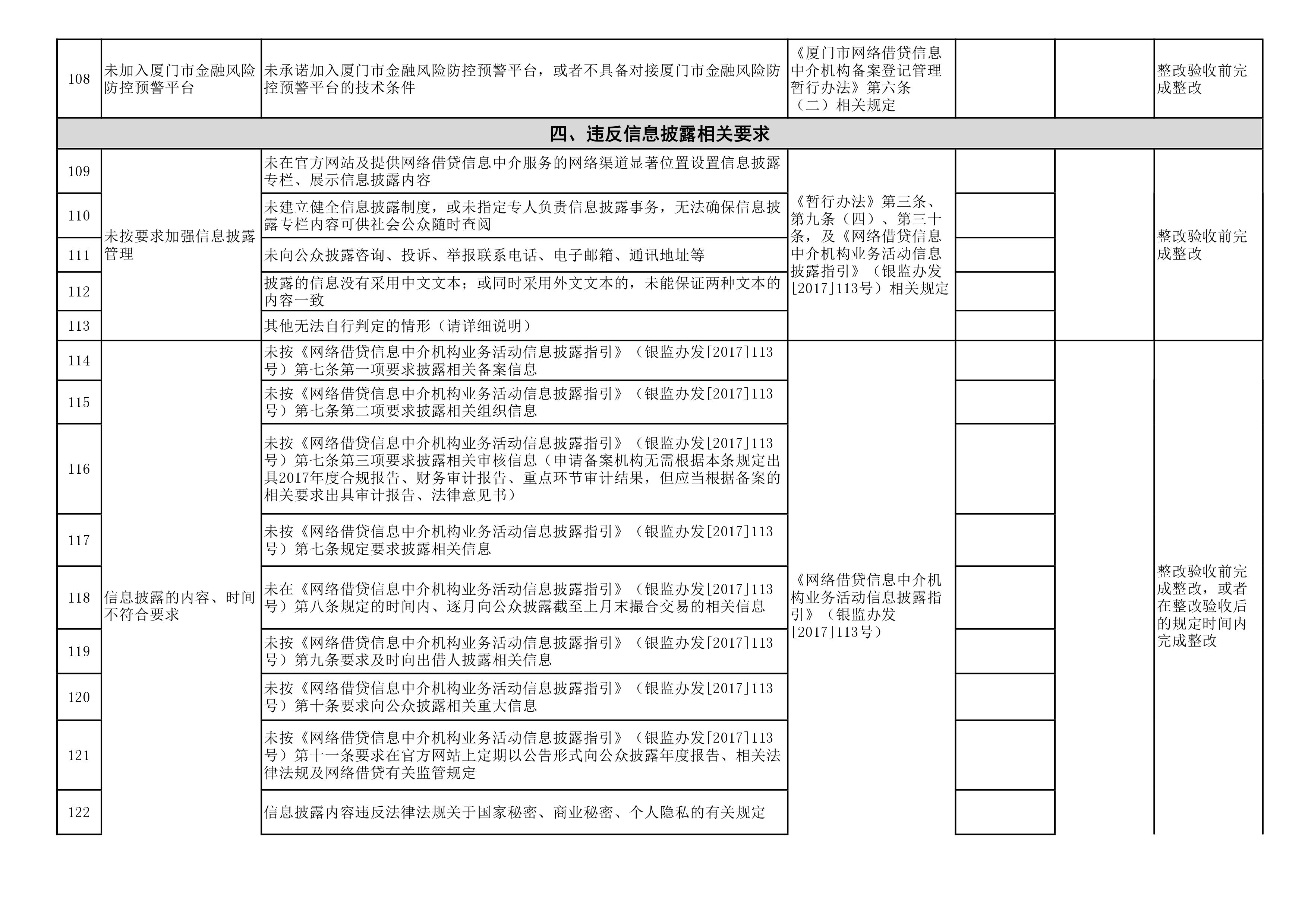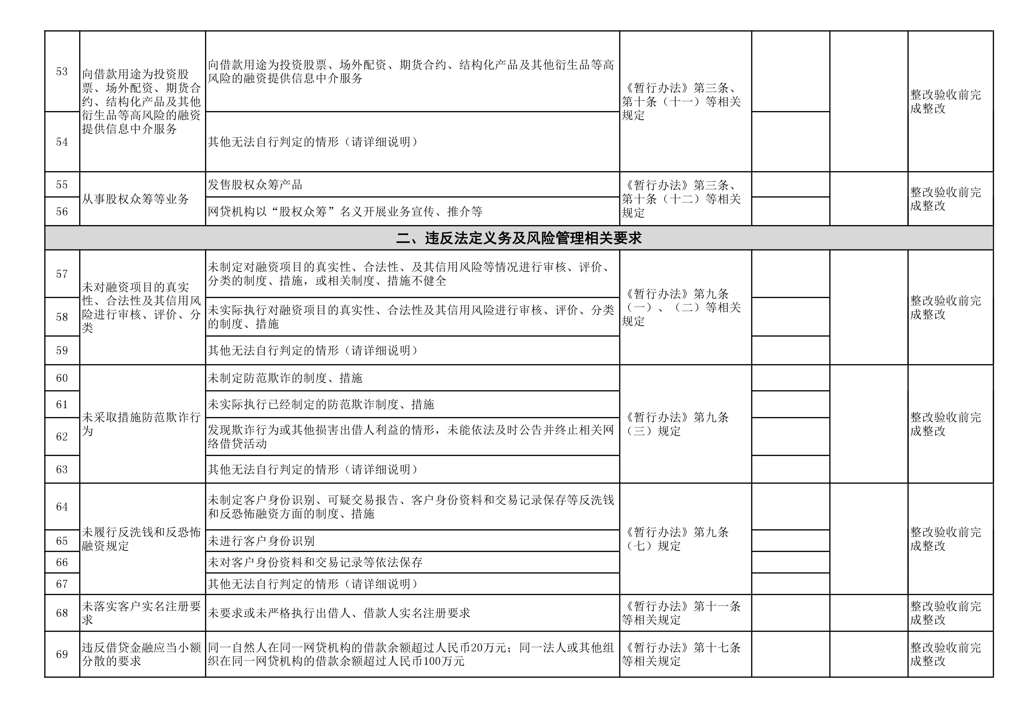 附《网络借贷信息中介机构合规审核与整改验收工作指引表》全文