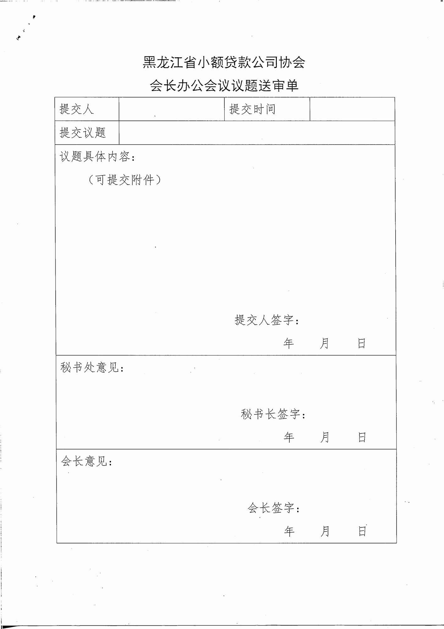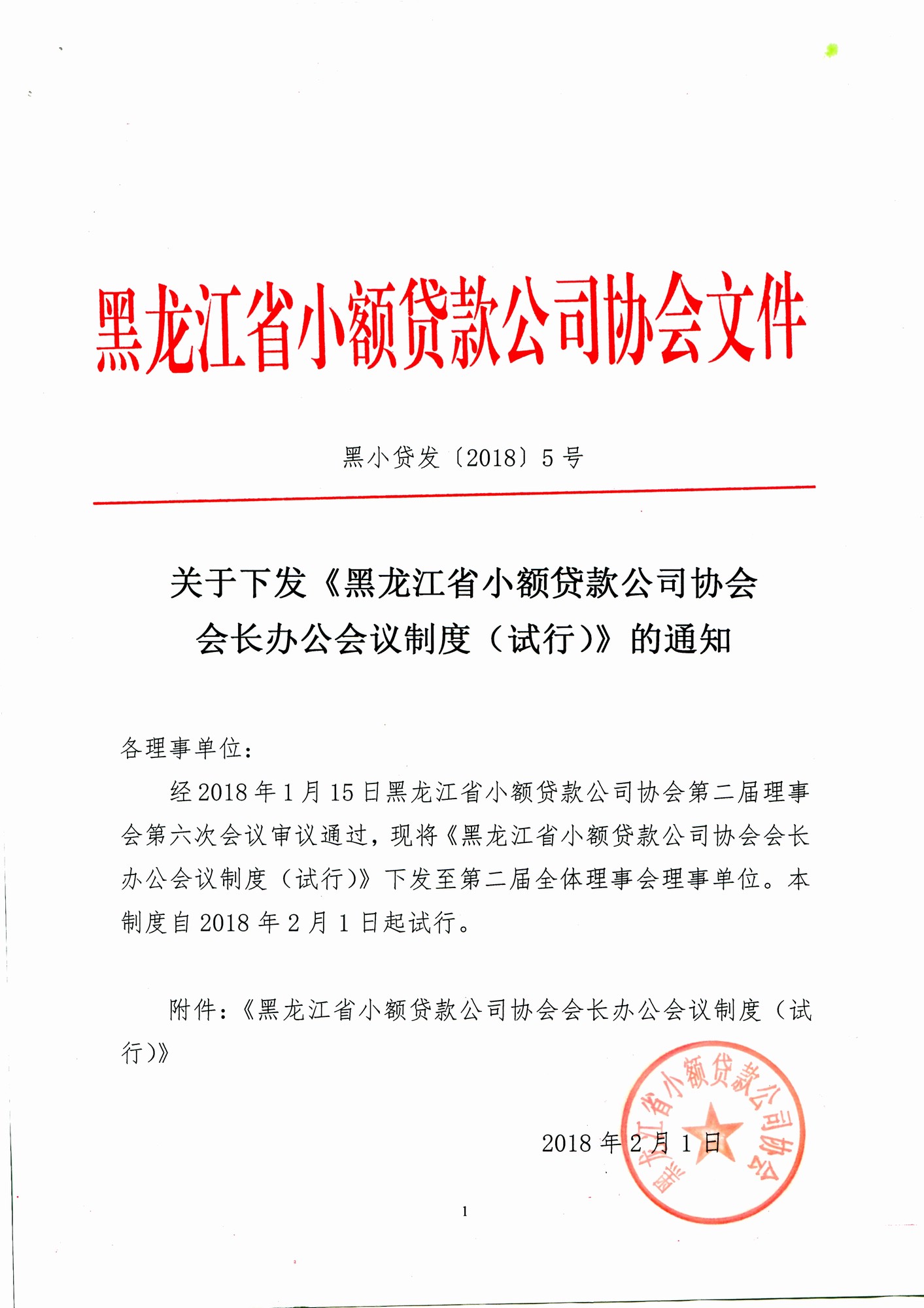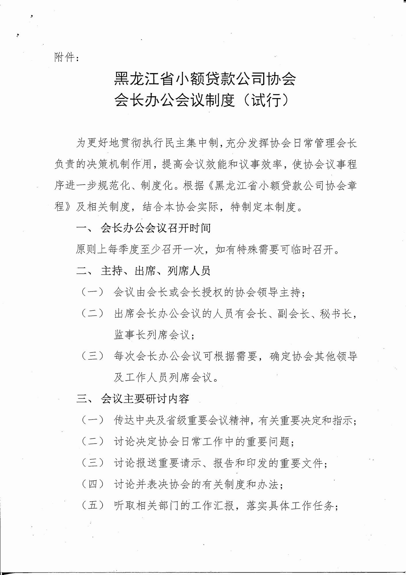 关于下发《黑龙江省小额贷款公司协会会长办公会议制度(试行)》的通知