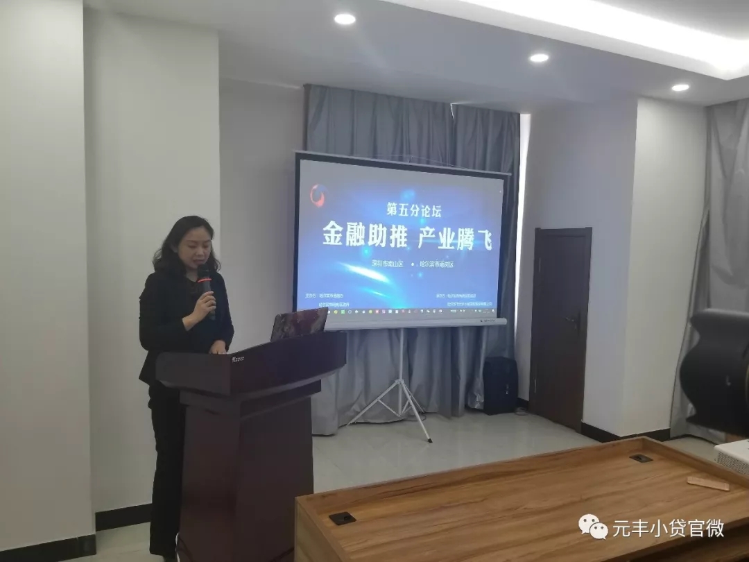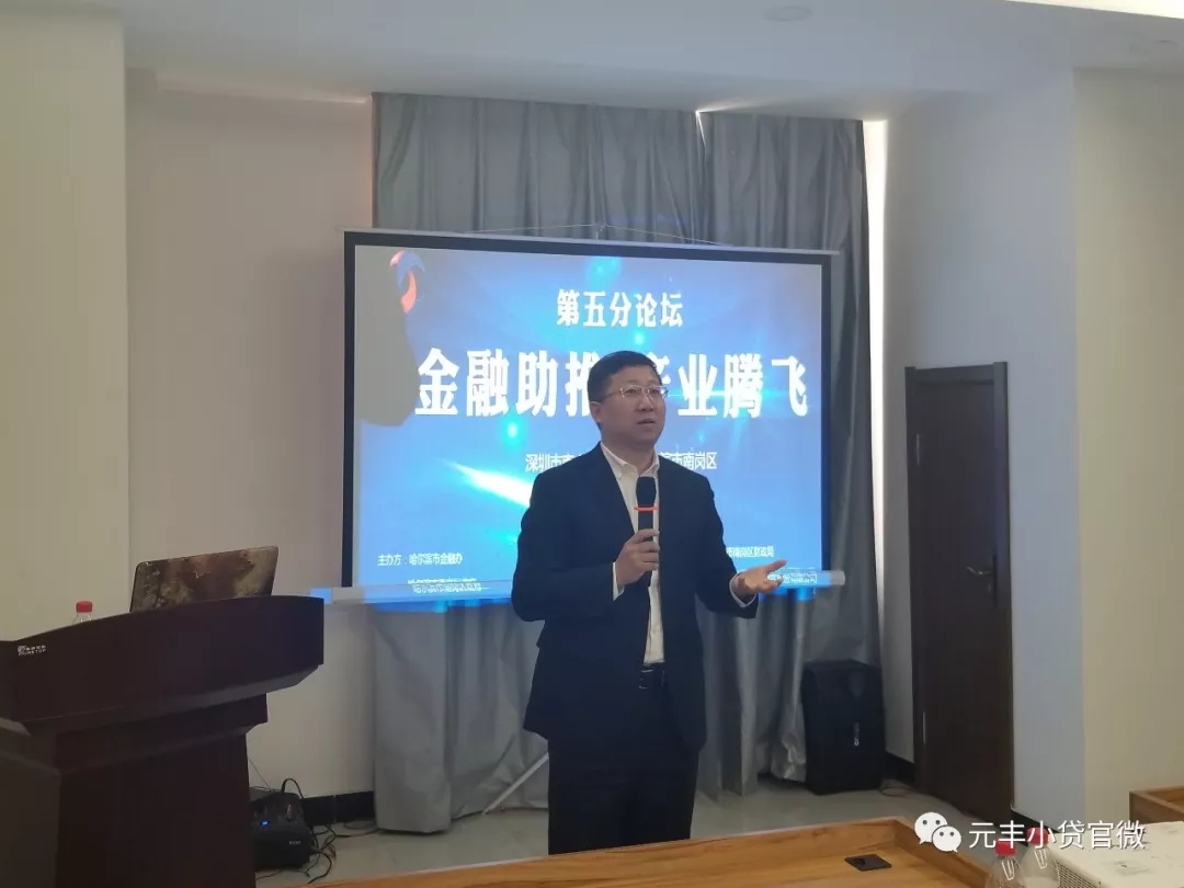 2018年3月27日上午,由哈尔滨市金融办、哈尔滨市南岗区政府主办,哈尔滨市南岗区财政局、哈尔滨市元丰小额贷款股份有限公司承办的"深圳市南山区—哈尔滨市南岗区对口合作签约大会暨区域协同发展论坛"第五分论坛活动在哈尔滨市南岗区科技金融大厦举行。主会场的签约大会及发展论坛活动中包括深圳市南山区与哈尔滨市南岗区友好城区暨区域协同框架协议签订、项目签约、科技人才实力启动、主题演讲以及各分论坛路演等环节。其中,以"金融助推,产业腾飞"为主题的第五分论坛是此次活动中颇具特色的一环。分论坛通过南岗科技金融产业园路演、嘉宾演讲等形式,向与会者展示科技金融的现状并畅想未来与发展,以期各方共创共赢,引发创新动力,以科技金融助推实体经济发展。