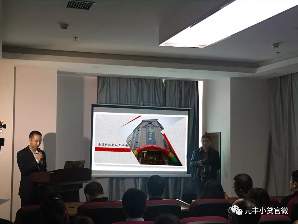 (图为元丰小贷董秘彭潜做园区路演)