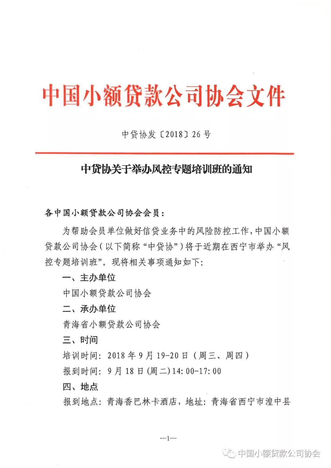 转发:【中贷协通知】中贷协关于举办风控专题培训班的通知