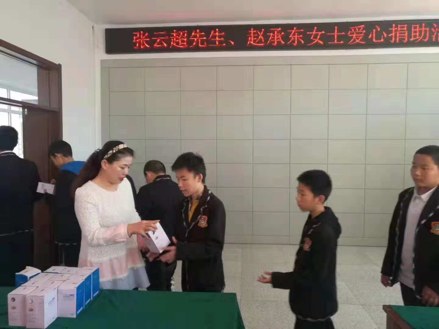 2018年10月25日中午,省协会鹤岗代表处主任委员赵承东与其家人来到鹤岗知行中学,举行了爱心捐助活动,为深秋的孩子们送去"温暖"。
