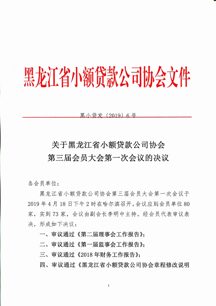 黑龙江省小额贷款公司协会召开第三届会员大会第一次会议