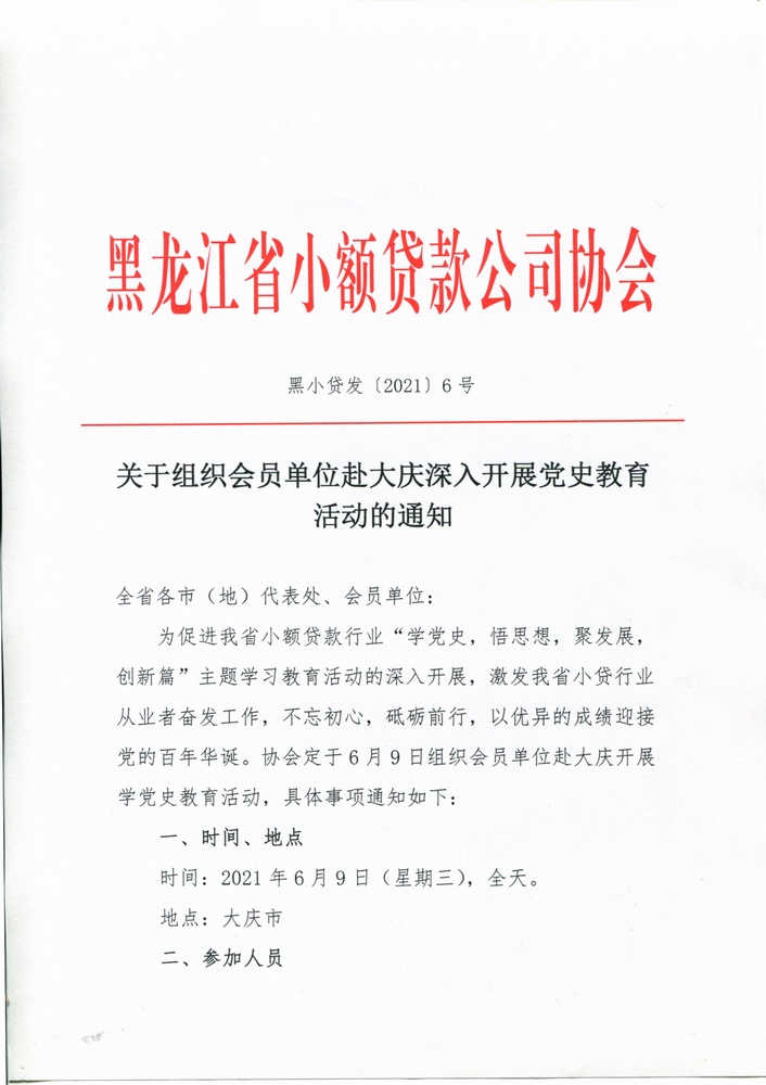 关于组织会员单位赴大庆深入开展党史教育活动的通知